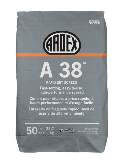 ARDEX A 38™ Rapid Set Screed is a precision-engineered, polymer-modified, cement screed that sets, hardens and dries rapidly. Use for interior or exterior applications including swimming pools and other wet areas. ARDEX A 38 can be walked on 3 hours after application and can receive tile or stone after just 4 hours, even when used as an unbonded or floating screed. After only 1 day, the compressive strength and tensile strength of ARDEX A 38 exceed those that regular cement screeds achieve after 28 days.