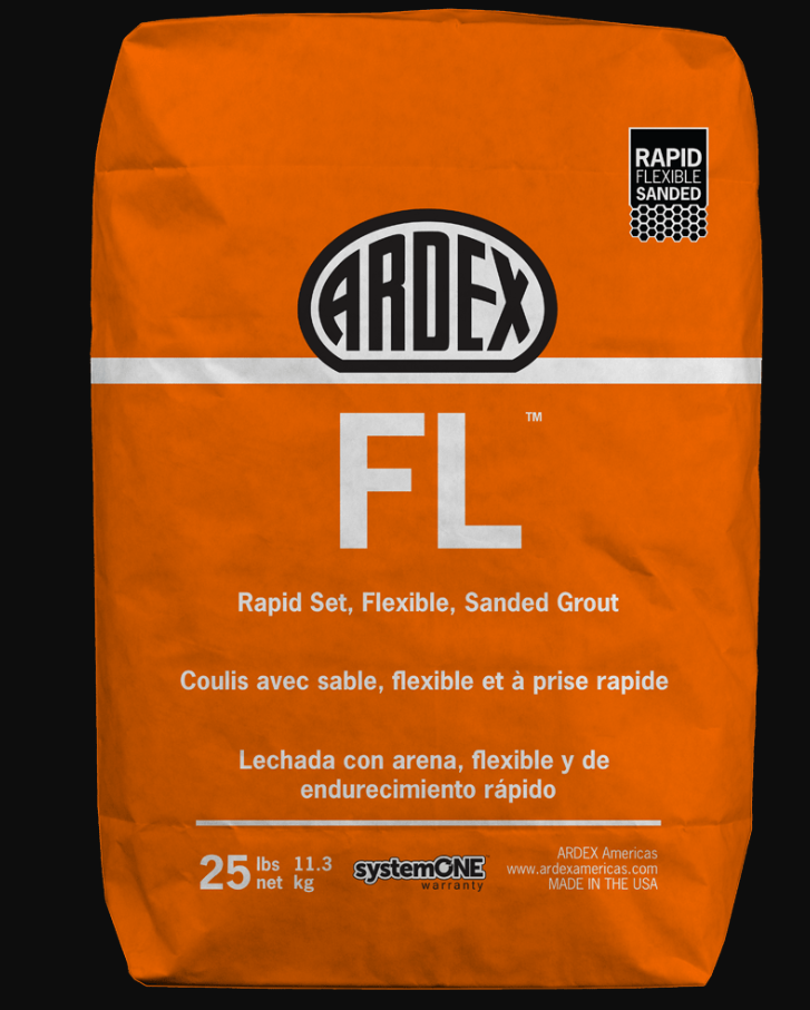 ARDEX FL™ Rapid Set, Flexible, Sanded Grout is a high-performance, Portland cement-based, polymer-modified grout that provides a smooth finish for floor and wall tile joints 1/16″ to 1/2″ (1.5 mm to 12.7 mm) wide on installations of porcelain, glass, quarry, ceramic, mosaic and most natural stone* tiles. Freeze/thaw resistant, stain resistant, water repellent and naturally resistant to mold and mildew formation, ARDEX FL is also fast setting and can be open to traffic in just 90 minutes. With excellent flexibility and high strength, ARDEX FL is ideal for interior and exterior floor and wall applications, as well as for use in swimming pools and other wet areas with pH-balanced water.
