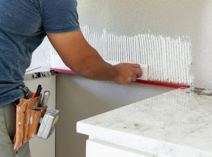The LEDGER BOARD PRO is designed to span a gap between horizontal surfaces and support tile or other material until the mortar or adhesive has set up. The Ledger Board Pro is machined from Aerospace Aluminum, 32″ long, 1-1/4″ wide and 1/2″ tall. The tool rests on top of the horizontal surfaces with the use of the support/adjustment tabs and an angled support ledge that drops down to the 29-3/4″support ledge. The horizontal support tabs can be used to adjust the device for leveling of the material in relation to the horizontal surfaces with the use of different sized shims. The LEDGER BOARD PRO device eliminates the need of mechanical and adhesive fasteners in the installation of ledger boards.
