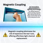 Inside dimensions: 13″ in length, 25″ in height, and 3.5″ in depth, with a fully adjustable light channel thanks to magnetic coupling. Position the light channel anywhere from front to back, ensuring full serviceability.