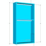 Outside dimensions: 14″ in length, 26″ in height, and 4″ in depth, including an adjustable shelf with a light channel.